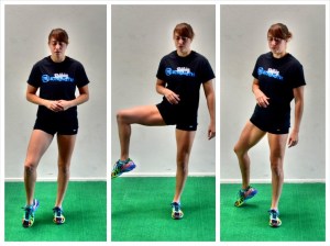 - Standing hurdles (gluteus,hip flexors) 10 reps clockwise and 10 anti-clockwise for each leg