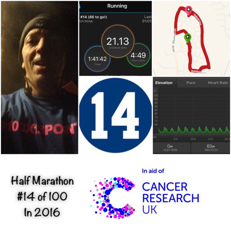 The original route was discarded and I decided to run a lap of just over 1 mile around the estate where I live, and repeat it until I reached 13.1 miles, and it worked out at just over 11 laps. This way if I didn’t feel right I wouldn’t have long to go back home!