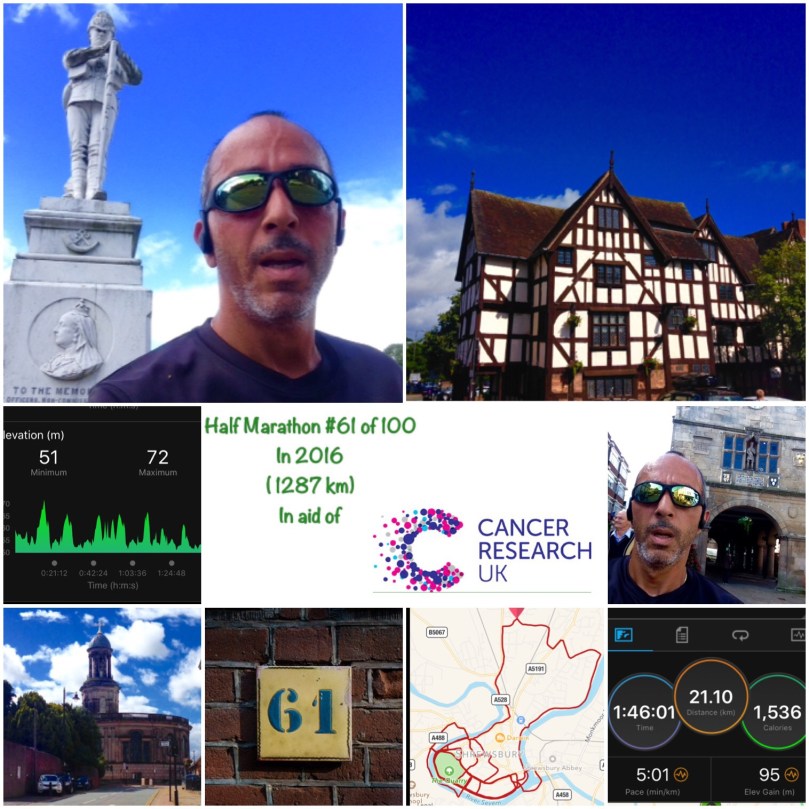 We ran to Bicton and towards Montford Bridge and turned back to Copthorne and back into town.