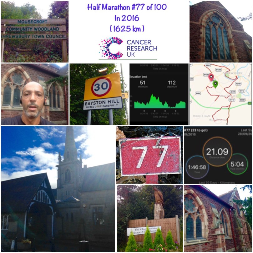 Started at The old Percy Thrower’s, parked the car there and ran down Sutton Rd, up Wenlock Rd, down London Rd , Pritchard and Hazeldine Way and Roman Rd.