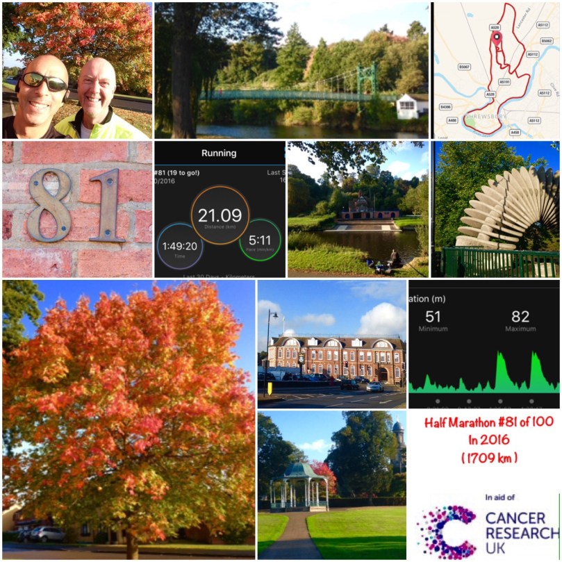 We ran together for 7 km, started with intervals at Greenfields, around four laps of the field and then we ran a 5k loop up Ellesmere Rd, Mount Pleasant, Ditherington and back to Greenfields. Rob got in his car and I carried on into Town, up Castle Street and through town centre and to the Quarry, along the river to Castlefields and finished with another 5k loop that we did at start of run.